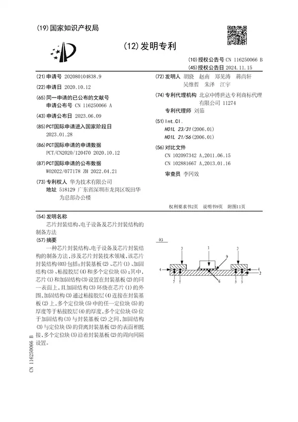 11月17日消息,今日在國(guó)家知識(shí)產(chǎn)權(quán)局官網(wǎng)查詢發(fā)現(xiàn),華為技術(shù)有限公司日前公告了一項(xiàng)名為“芯片封裝結(jié)構(gòu)、電子設(shè)備及芯片封裝結(jié)構(gòu)的制備方法”的專利,授權(quán)公告號(hào)CN116250066B,申請(qǐng)日期為2020年10月。