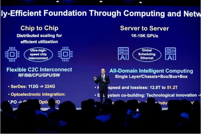 首先是算網(wǎng)進階,打造高效基座。在智算領域,高速網(wǎng)絡連接不僅不可或缺,而且至關重要,無論是芯片內(nèi)裸Die互聯(lián)、芯片之間、服務器之間、DC之間,網(wǎng)絡連接技術的持續(xù)創(chuàng)新和突破,將極大的提升智算的性能與效率。