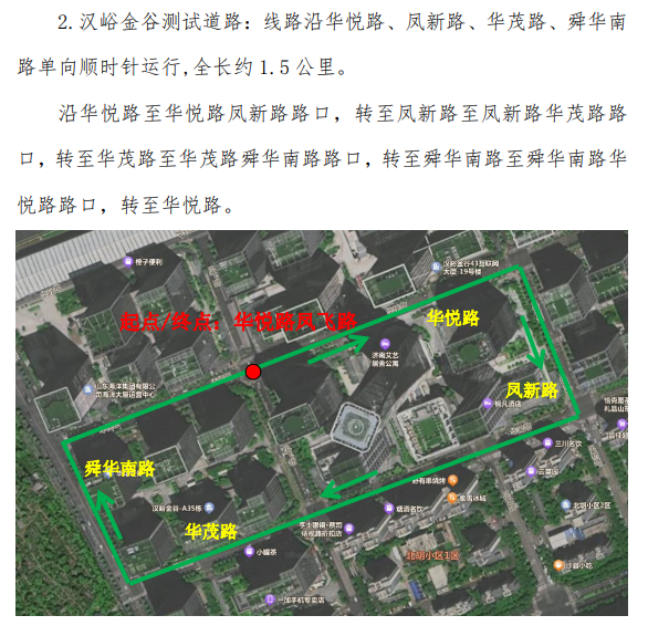 濟(jì)南公示的測(cè)試路段有三段,涉及華山湖、中央商務(wù)區(qū)及漢峪金谷,其中環(huán)華山湖測(cè)試道路起點(diǎn)華陽宮站,結(jié)束華陽宮站,全長約 9.3 公里;中央商務(wù)區(qū)測(cè)試道路起點(diǎn)國際金融停車場(chǎng),結(jié)束國際金融停車場(chǎng),全長約 2.9 公里;漢峪金谷測(cè)試道路,起點(diǎn)華悅路鳳飛路,結(jié)束華悅路鳳飛路,全長約 1.5 公里。