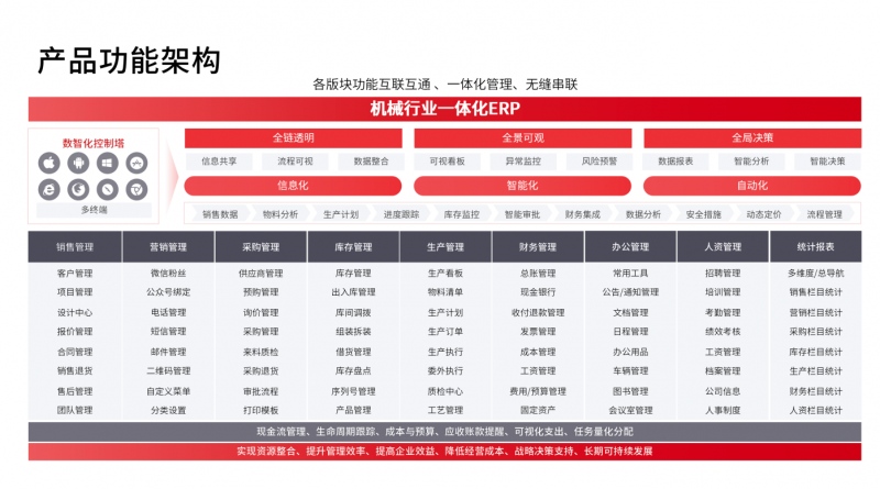面對這些根深蒂固的行業(yè)痛點,傳統(tǒng)管理工具已難以滿足企業(yè)轉型需求。智邦一體化ERP憑借對機械設備行業(yè)生產(chǎn)特性的深刻洞察,構建起針對性的解決方案,成為打破“黑箱”困局的關鍵力量。