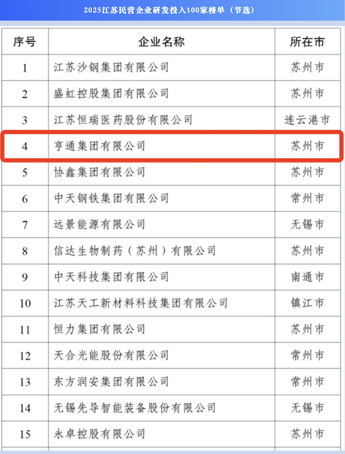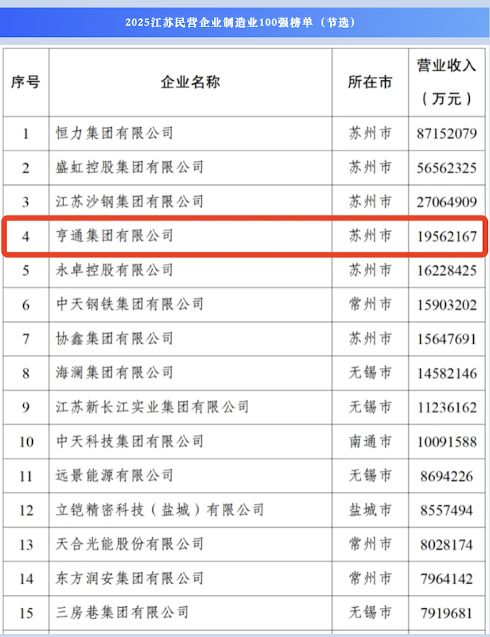 再進一步!亨通榮登2025江蘇民企百強第4位