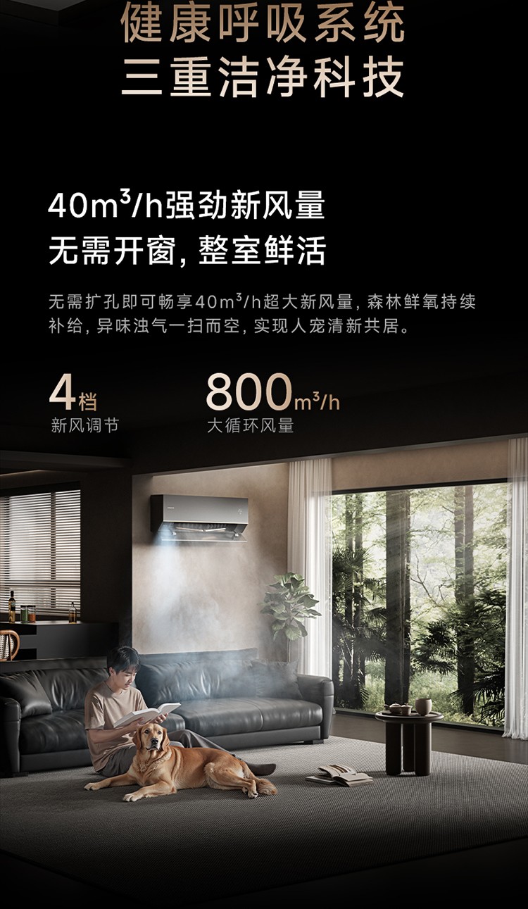 考慮到用戶對(duì)健康生活的需求,追覓機(jī)械臂空調(diào)同時(shí)采用強(qiáng)勁新風(fēng)煥新系統(tǒng),40m³/h新風(fēng)量配合H13級(jí)HEPA濾網(wǎng),即便在緊閉門窗的情況下,也能讓用戶擁有健康清新空氣。