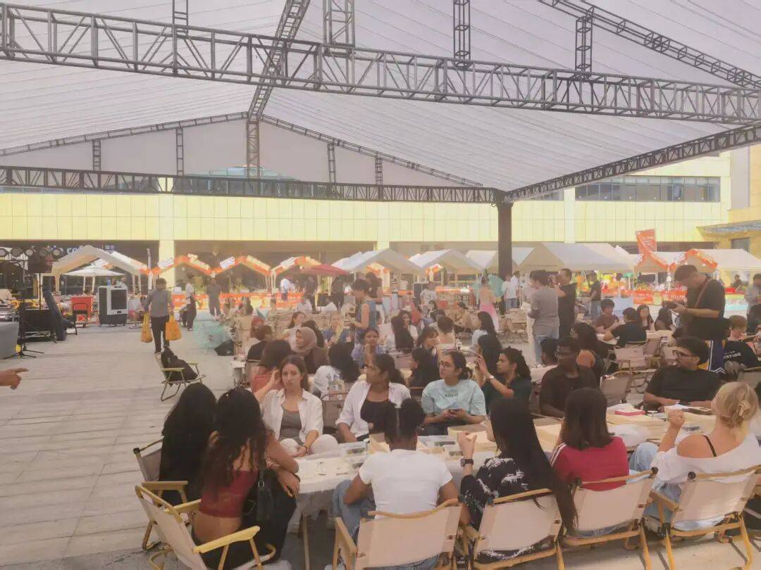 前來打卡的游客絡繹不絕,活動又帶動了當?shù)氐奶厣蛷d。貝迪餐廳表示,國慶第一天排隊就高達1000多桌,2號開始每天排隊的流量可能會高達5000桌到8000桌。全球吃貨節(jié)期間,主會場繡湖廣場人流超23萬人次。
