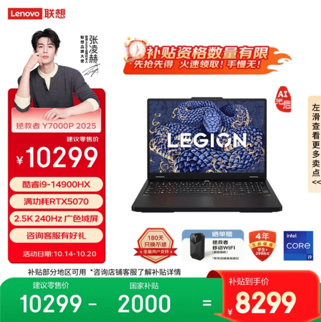 聯(lián)想拯救者Y7000P 2025 AI元啟游戲筆記本是京東與聯(lián)想共同打造的爆款產(chǎn)品。搭載英特爾酷睿i9-14900HX處理器和RTX5070,性能強(qiáng)悍,無論是在創(chuàng)作、工作還是游戲中,都能獲得優(yōu)質(zhì)體驗。支持一鍵喚醒聯(lián)想天禧個人超級智能體,可使用AI操控、AI搜索、AI翻譯、AI筆記、AI服務(wù)這五大黃金功能,更便捷。還搭載第二代乾坤散熱系統(tǒng),噪音低,風(fēng)量大,溫度有保障。聯(lián)想拯救者Y7000P 2025 AI元啟游戲筆記本(i9-14900HX 16G 1T RTX5070 2.5K 240Hz 黑)京東原價10299元,部分地區(qū)享國補(bǔ)立減2000元,到手價8299元,可享180天只換不修。