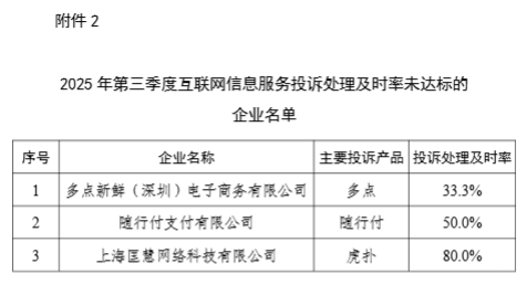 在互聯(lián)網(wǎng)信息服務(wù)投訴方面,2025年第三季度,互聯(lián)網(wǎng)信息服務(wù)投訴平臺(tái)收到的互聯(lián)網(wǎng)用戶投訴中,服務(wù)功能類投訴占比47.2%,客服渠道類投訴占比18.2%,個(gè)人信息保護(hù)類投訴占比17.9%,其他類投訴占比16.7%。在接入平臺(tái)的178家互聯(lián)網(wǎng)企業(yè)中,多點(diǎn)等3家企業(yè)投訴處理及時(shí)率較低,工信部已督促相關(guān)企業(yè)妥善處理用戶反映的問(wèn)題。