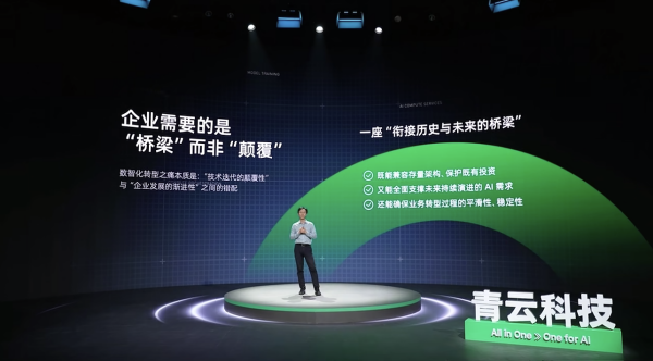 面對(duì)企業(yè)客戶的現(xiàn)實(shí)需求,青云給出的轉(zhuǎn)型答案是架設(shè)一座銜接歷史與未來(lái)的橋梁。它能夠兼容存量架構(gòu),保護(hù)既有投資,又能全面支持未來(lái)持續(xù)演進(jìn)的AI需求,還能確保業(yè)務(wù)轉(zhuǎn)型中的平滑性和穩(wěn)定性。