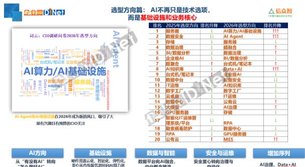 彭俊在演講中還指出,當(dāng)AI Agent顛覆傳統(tǒng)認(rèn)知,當(dāng)算力基礎(chǔ)設(shè)施取代服務(wù)器成為新戰(zhàn)場,CIO群體正經(jīng)歷著前所未有的職業(yè)危機(jī)——平均3-5年的任期背后,是經(jīng)濟(jì)下行壓力、業(yè)務(wù)價(jià)值交付困境與網(wǎng)絡(luò)安全合規(guī)的三重絞殺。2025年預(yù)算回暖信號中,央國企成為投資主力軍,但RPA等傳統(tǒng)領(lǐng)域優(yōu)化與存儲設(shè)施投入放緩的現(xiàn)實(shí),揭示著技術(shù)選型的結(jié)構(gòu)性變革:數(shù)據(jù)平臺向AI融合、安全重心轉(zhuǎn)向治理自動(dòng)化,中臺概念逐漸褪色。