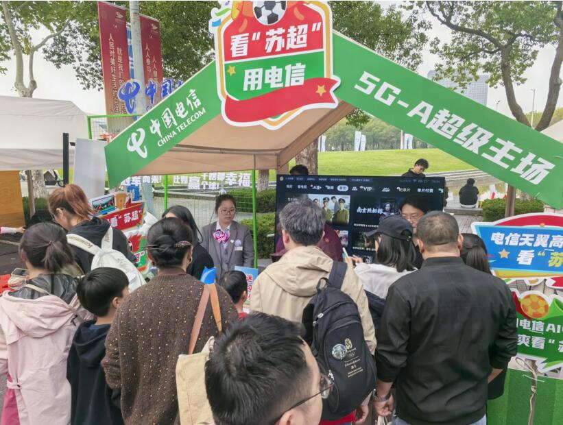比賽期間,江蘇電信在南京南站、新街口商圈等多個(gè)城市地標(biāo)投放了“中國電信5G-A超級主場”的廣告大屏;打造了“蘇超”專屬地鐵應(yīng)援專列;在高鐵車廂、營業(yè)廳、電影院均投放了5G-A宣傳片及海報(bào),實(shí)現(xiàn)了5G-A與“蘇超”的全城聯(lián)動(dòng)。在無錫,江蘇電信舉辦了數(shù)字生活節(jié)暨蘇超觀賽嘉年華活動(dòng),現(xiàn)場設(shè)置5G-A掃碼體驗(yàn)引導(dǎo)區(qū)、產(chǎn)品演示體驗(yàn)區(qū)和直播區(qū),并邀請專家進(jìn)行了5G-A小講座,讓觀眾零距離感受5G-A網(wǎng)絡(luò)的快速與便捷。