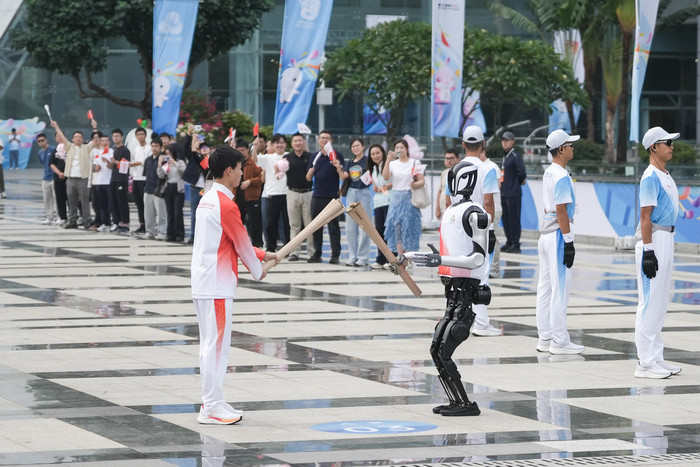 全運火炬?zhèn)鬟f,5G-A機器人全球首棒獨立開跑!