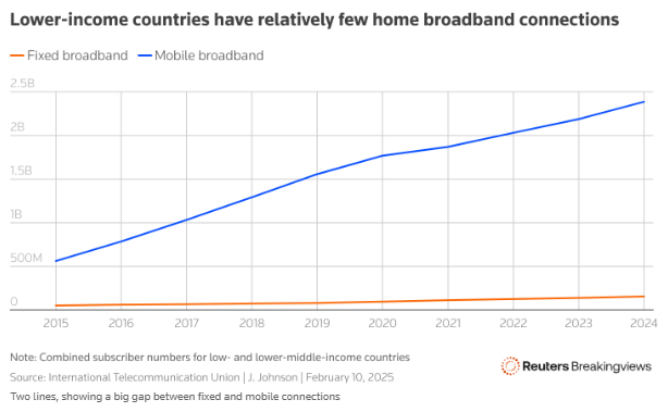 然而,電信行業(yè)樂觀人士的論點也存在漏洞。首先,他們忽略了全球一些最大的電信市場仍缺乏足夠的家庭寬帶服務(wù)。以印度為例,根據(jù)該國電信監(jiān)管機構(gòu)的數(shù)據(jù),印度僅有4100萬固定互聯(lián)網(wǎng)用戶,而無線用戶高達(dá)9.04億。換句話說,大多數(shù)人依賴移動數(shù)據(jù)上網(wǎng),這意味著像星鏈這樣的家庭寬帶提供商在市場上存在巨大機會。
