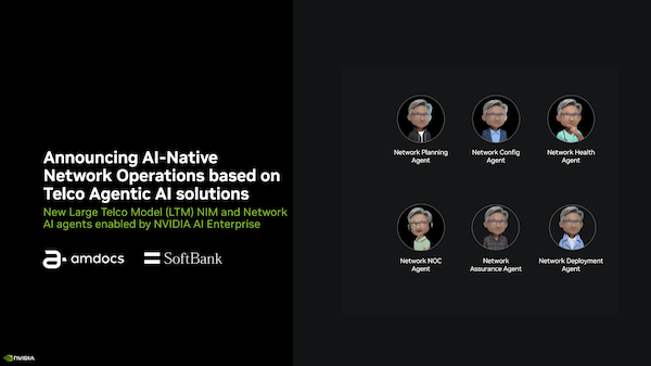 英偉達的合作伙伴在本次GTC大會上展示了專門為電信行業(yè)定制的多模態(tài)大語言模型LTM(Large Telco Model),能夠作為網(wǎng)絡AI智能體的核心組成部分,自動化復雜的決策流程、提高運營效率與員工效率,并增強網(wǎng)絡性能。該模型利用NVIDIA AI Enterprise軟件平臺中的NVIDIA NIM和NeMo微服務,推動新一代AI在網(wǎng)絡運營中的應用。