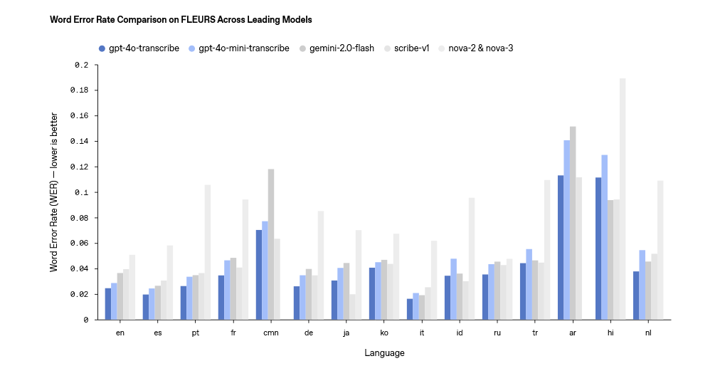 這兩個(gè)模型支持超 100 種語(yǔ)言,主要通過(guò)強(qiáng)化學(xué)習(xí)和多樣化高質(zhì)量音頻數(shù)據(jù)集訓(xùn)練,能捕捉細(xì)微語(yǔ)音特征,減少誤識(shí)別,尤其在嘈雜環(huán)境、口音及不同語(yǔ)速下表現(xiàn)更穩(wěn)定。