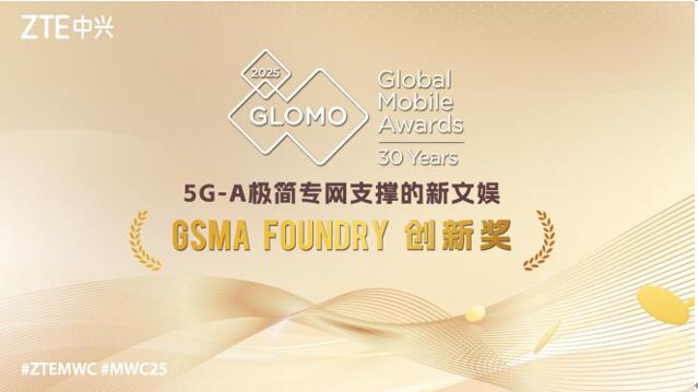 【西班牙,巴塞羅那,2025年3月6日】在MWC25巴塞羅那期間,中興通訊“5G-A極簡專網(wǎng)方案”榮獲全球移動大獎(GLOMO)“GSMA Foundry創(chuàng)新獎”。這一榮譽不僅彰顯了業(yè)界對中興通訊5G-A極簡專網(wǎng)方案的高度認(rèn)可,更是對中興通訊及其合作伙伴在推動文娛產(chǎn)業(yè)數(shù)字化轉(zhuǎn)型方面所取得成就的肯定,如近兩年備受歡迎的VR大空間劇場及游戲、新媒體及電視的4K無線化制播等創(chuàng)新應(yīng)用。