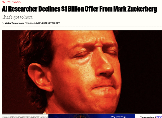 扎克伯格在商戰(zhàn)中崇尚簡單粗暴直接。過去幾個月時間,他的Meta展開了一場“人才閃電戰(zhàn)”,對OpenAI、谷歌、蘋果等公司展開了一場突襲,用難以置信的報價直接大量挖走頂尖AI技術(shù)人才。OpenAI對此深受其害,今年7月甚至一次性被挖走了八名核心技術(shù)骨干,其中還包括了剛從谷歌挖來的DeepMind人才。
