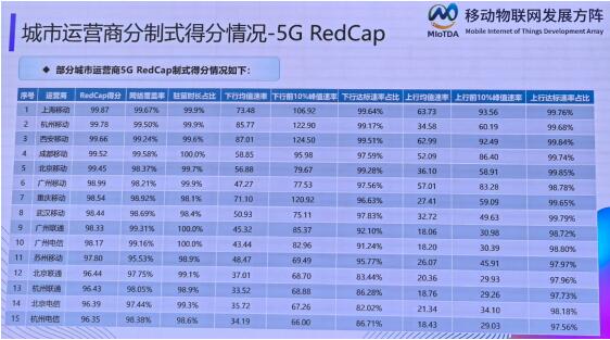 5G RedCap網(wǎng)絡(luò)質(zhì)量前十強(qiáng),中國移動獨(dú)占前八!