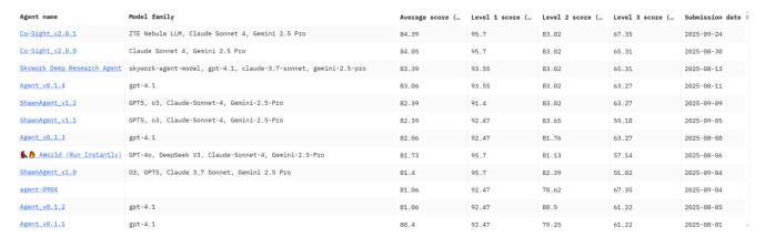 飛象網(wǎng)訊 在被譽(yù)為“AI界GitHub”的Hugging Face平臺(tái)上發(fā)布的 GAIA 評(píng)測(cè)基準(zhǔn)最新榜單中,中興通訊開源的“Co-Sight超級(jí)智能體2.0”再次已以84.39%的綜合成績(jī)位列全球第一,成為拿下該榜榜首的中國(guó)超級(jí)智能體。GAIA榜單由Meta、Hugging Face與AutoGPT聯(lián)合發(fā)布,采用封閉測(cè)試集與自動(dòng)評(píng)分機(jī)制,結(jié)果可復(fù)現(xiàn)、可審計(jì),已被多家頂尖機(jī)構(gòu)與國(guó)際會(huì)議廣泛引用,是評(píng)估通用AI智能體綜合能力的權(quán)威基準(zhǔn)。