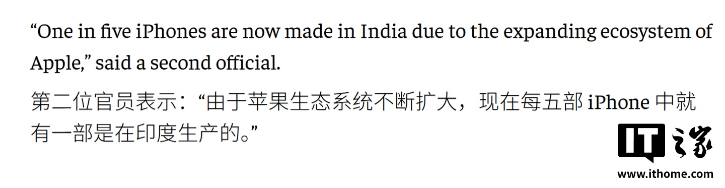 更重要的是,其中 76%(價(jià)值 340 億美元)的 iPhone 產(chǎn)品被銷往海外市場,讓智能手機(jī)從 2014-15 財(cái)年印度出口排行榜的第 167 位躍升至榜首,彰顯了印度作為全球出口中心日益增長的重要性。