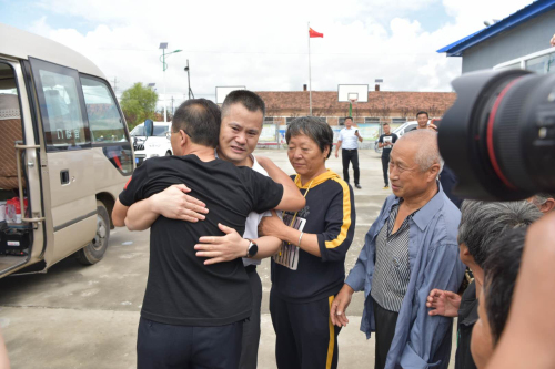 太平村村口,頭發(fā)花白的張大娘握著一個(gè)小伙子的手,
