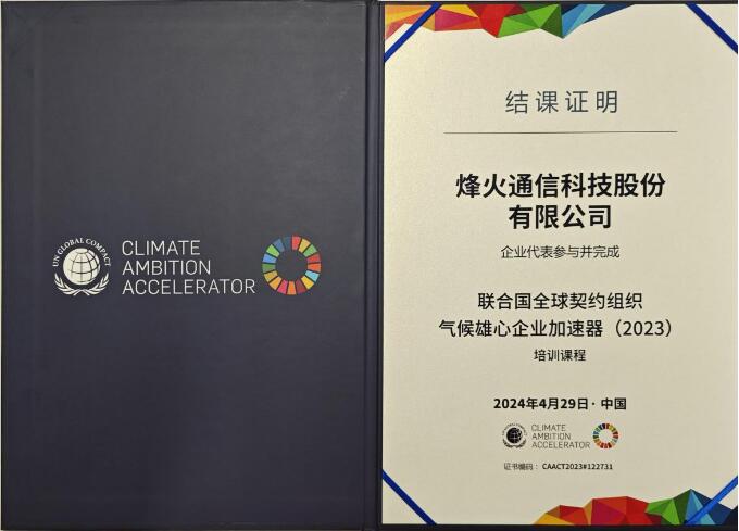 近日,聯(lián)合國全球契約組織(UNGC)2023年氣候雄心企業(yè)加速器項目(CAA)結(jié)課儀式在上海舉行,烽火通信等20余家中國企業(yè)被授予2023年度氣候雄心企業(yè)加速器項目結(jié)課證書,以表彰企業(yè)在應(yīng)對氣候變化、碳目標設(shè)定與減排行動方面的積極努力。
