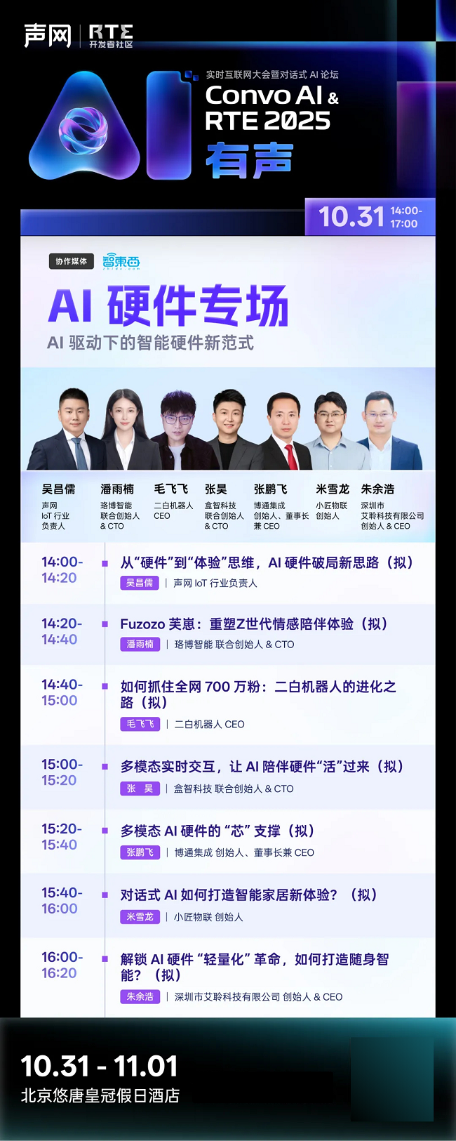 ConvoAI&RTE2025 AI硬件專場將聚焦三大核心方向,為行業(yè)提供 “從趨勢到落地” 的全鏈路價值: