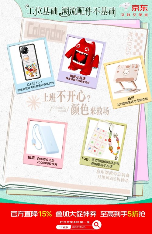每天在工位上埋頭苦干,堆積如山的工作與無形的壓力如影隨形。而這時(shí),一件充滿設(shè)計(jì)感的潮流配件,就像生活里的小確幸,能瞬間治愈疲憊的心情。CASETiFY快樂露營華為折疊屏手機(jī)殼,將戶外閑趣帶到指尖,每一次拿起手機(jī)都能成為放松。Tagi塔皮團(tuán)圓磁吸殼+泰國限定手機(jī)鏈,異域風(fēng)情為手機(jī)增添一抹別樣色彩;唱吧小巨蛋魔鬼貓藍(lán)牙麥克風(fēng),空閑時(shí)間隨時(shí)能開啟一場(chǎng)迷你演唱會(huì),釋放工作壓力;極川360°旋轉(zhuǎn)筆記本電腦支架,靈活調(diào)節(jié)屏幕角度,頸椎和視角都更自由;倍思20000毫安充電寶自帶充電線,告別線材雜亂,輕松“滿電”出門。