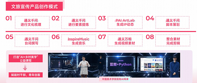 “我們通過暑期走進(jìn)長虹,深度了解本地文化,以開化縣長虹鄉(xiāng)‘源頭活水’為精神脈絡(luò),制作出專屬于開化的全新音視體驗(yàn),團(tuán)隊(duì)借助阿里云百煉平臺構(gòu)建工作流,將‘開化青年’吉祥物化作“長虹生活體驗(yàn)官”,在歌詞敘事中融入‘七彩長虹’文化密碼,同時RAP部分串聯(lián)長虹十大特色農(nóng)產(chǎn)品,在‘浙YOUNG游’的青春視角下,構(gòu)建出一幅“學(xué)在長虹、吃在長虹、行在長虹、住在長虹”的全景式鄉(xiāng)村生活圖鑒。”獲得一等獎的中國美術(shù)學(xué)院團(tuán)隊(duì)代表介紹道。