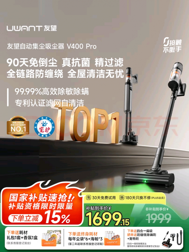 “買時容易修時難” 是很多人對吸塵器的顧慮,這也讓 “哪個吸塵器品牌售后好” 成為選品關(guān)鍵。相較于部分品牌 “質(zhì)保短、網(wǎng)點少” 的短板,友望在吸塵器品牌售后上給出了誠意方案:全系產(chǎn)品提供 2 年整機質(zhì)保,中央維保,徹底解決了用戶的維修顧慮;購買友望V400pro還能夠獲得終身贈送耗材的福利,雙十一更有國家15%的補貼,福利多多。