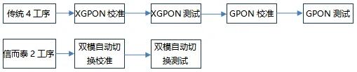 極限優(yōu)化:產(chǎn)線生產(chǎn)工藝流程成熟以后,甚至可進(jìn)一步合并為1工序完成XGPON&GPON雙模校準(zhǔn)&測(cè)試