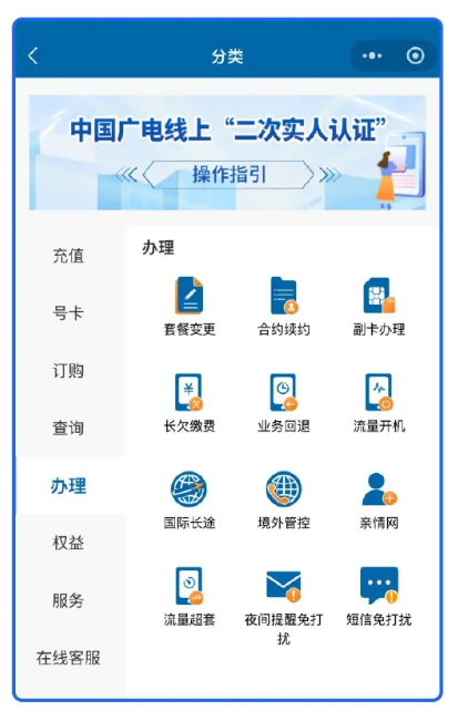 中國廣電營業(yè)廳小程序:在小程序“辦理”欄目中,點擊“短信免打擾”。