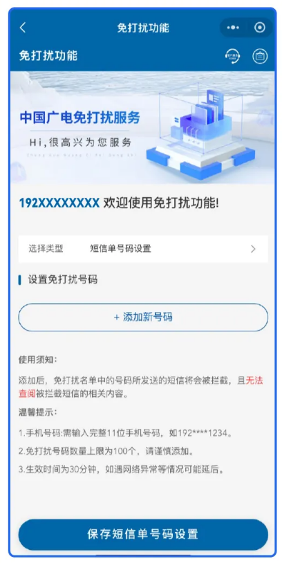 中國廣電 192 號段短信免打擾功能上線