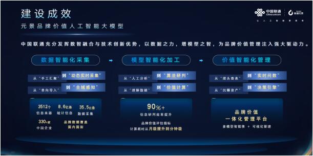元景品牌價(jià)值人工智能大模型針對(duì)品牌建設(shè)中品牌價(jià)值評(píng)估量化“難”、資源要素配置指導(dǎo)“難”、品牌國(guó)際化精準(zhǔn)作戰(zhàn)“難”三大難題,依托中國(guó)聯(lián)通數(shù)智融合、自主創(chuàng)新的經(jīng)驗(yàn),發(fā)揮大數(shù)據(jù)與人工智能領(lǐng)域優(yōu)勢(shì),研發(fā)了管理駕駛艙、企業(yè)決策站、指標(biāo)導(dǎo)航儀三大智能化解決方案,構(gòu)建了企業(yè)品牌管理的數(shù)智化核心支撐平臺(tái),實(shí)現(xiàn)了“讀得懂財(cái)報(bào)、算得出價(jià)值、說(shuō)得清歸因”的全流程能力。