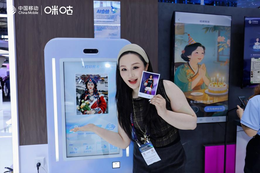 咪咕展區(qū)另一側(cè),AI 合拍一體機(jī)攜MWC科技感主題模版及 NBA 聯(lián)名模板升級(jí)亮相,以虛實(shí)融合影像體驗(yàn)重構(gòu)文旅合拍生態(tài)。用戶上傳單張照片,AI 即可極速生成定制化作品,無論你是喜歡契合大會(huì)氛圍的未來科技風(fēng),還是偏愛熱力四射的籃球運(yùn)動(dòng)風(fēng),多元主題特色的AI寫真模版都能滿足你的心愿,全程5分鐘,即可收到打印實(shí)體照或掃碼保存電子檔,讓影像創(chuàng)作成為即時(shí)可分享的數(shù)字資產(chǎn)。