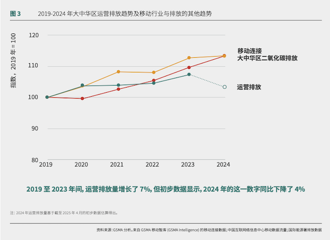 根據(jù)GSMA在2025 MWC上海期間發(fā)布的《移動(dòng)凈零排放》報(bào)告,盡管自2019年以來中國(guó)移動(dòng)數(shù)據(jù)流量增長(zhǎng)近四倍,但得益于能源效率提升和可再生能源使用比例增加,中國(guó)移動(dòng)運(yùn)營(yíng)商在2024年首次實(shí)現(xiàn)運(yùn)營(yíng)碳排放同比下降。