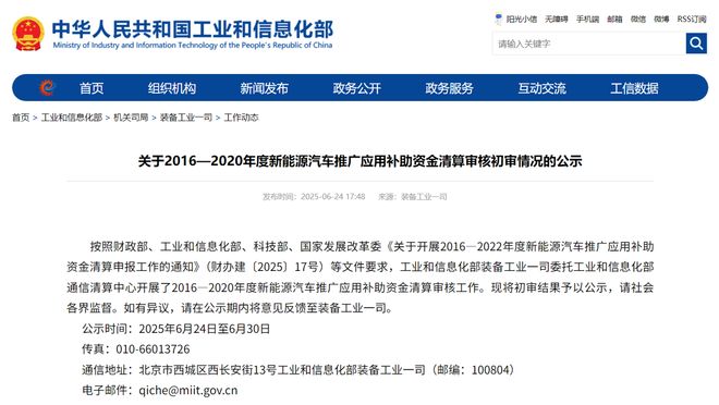 IT之家 7 月 10 日消息,工信部 6 月底發(fā)布《關(guān)于 2016—2020 年度新能源汽車推廣應(yīng)用補(bǔ)助資金清算審核初審情況的公示》(下稱“《公示》”),開(kāi)展了 2016—2020 年度新能源汽車推廣應(yīng)用補(bǔ)助資金清算審核工作。