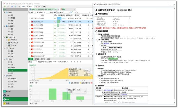 大型政務云平臺遭遇核心業(yè)務運行緩慢問題,初步懷疑網(wǎng)絡帶寬不足。在利用信而泰xnSight網(wǎng)絡應用性能管理系統(tǒng)進行全流量采集與分析的基礎上,疊加DeepSeek AI智能診斷功能,迅速識別出網(wǎng)絡下行方向存在異常丟包現(xiàn)象。