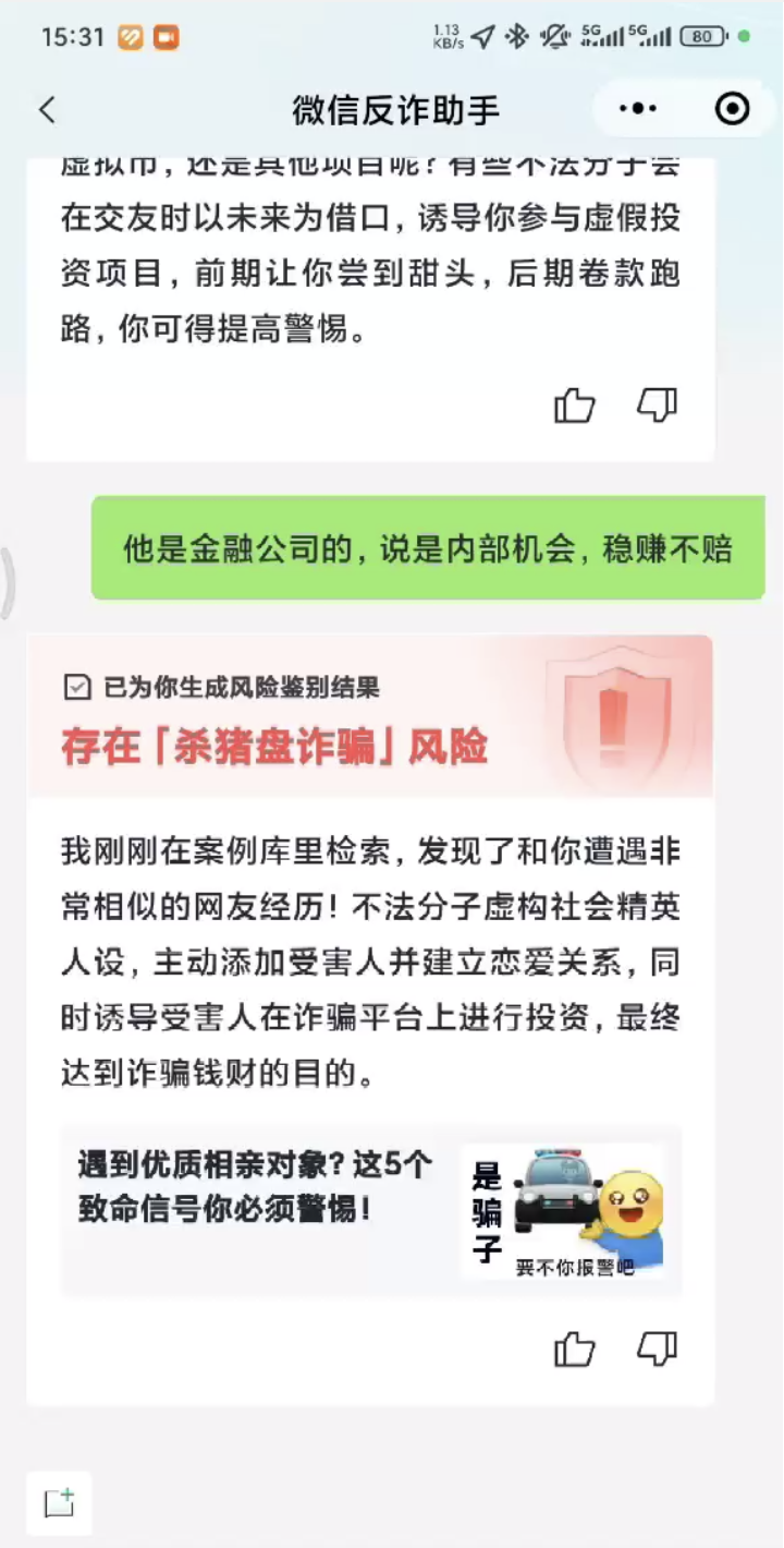 “通過(guò)平臺(tái)風(fēng)控策略,微信、QQ識(shí)別到潛在風(fēng)險(xiǎn)之后,將潛在風(fēng)險(xiǎn)信息推送至產(chǎn)品界面,向用戶發(fā)出預(yù)警提醒,同時(shí)提供反詐助手的服務(wù)入口。通過(guò)動(dòng)態(tài)追問(wèn)深挖疑點(diǎn),點(diǎn)明用戶潛在風(fēng)險(xiǎn)處境,并提供勸阻建議,真正幫助用戶從意識(shí)風(fēng)險(xiǎn)、鑒別風(fēng)險(xiǎn),到隔斷風(fēng)險(xiǎn)、解決風(fēng)險(xiǎn)!彬v訊反詐助手產(chǎn)品運(yùn)營(yíng)負(fù)責(zé)人說(shuō)。