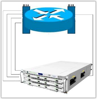 4. 將性能測試儀的端口分別與被測設(shè)備的板卡A和B相連。