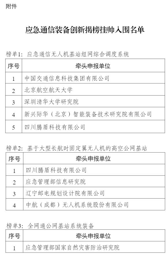 應(yīng)急通信裝備創(chuàng)新揭榜掛帥入圍名單出爐