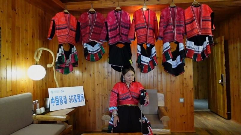 在“龍脊梯田”景區(qū)內(nèi)的大寨村壯界組,舞燕虹雲(yún)酒店老板天剛亮就開(kāi)啟了線(xiàn)上直播,向人們展示晨霧中的梯田美景,不時(shí)回復(fù)粉絲的提問(wèn),手機(jī)屏幕上點(diǎn)贊、咨詢(xún)預(yù)訂的留言不斷滾動(dòng)。很難想象在偏僻山鄉(xiāng)能有如此流暢的互動(dòng)直播效果,而這完全得益于村里全覆蓋的中國(guó)移動(dòng)5G網(wǎng)絡(luò)。