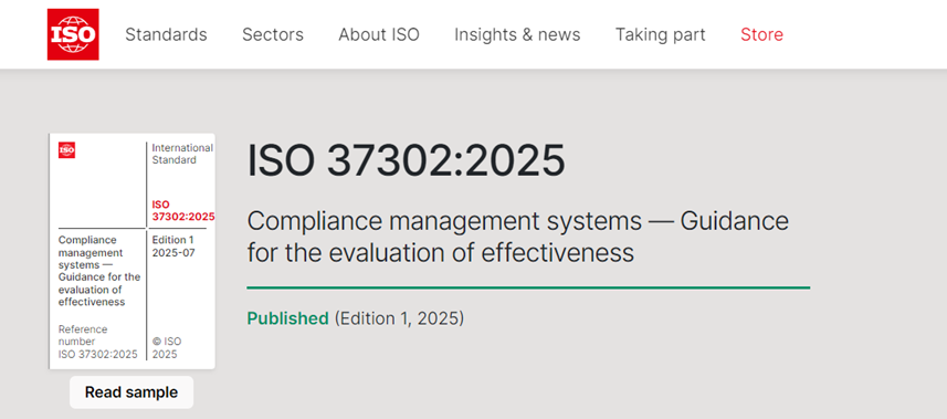 近日,國際標(biāo)準(zhǔn)化組織(ISO)正式發(fā)布了國際標(biāo)準(zhǔn) ISO 37302:2025《合規(guī)管理體系 有效性評(píng)價(jià)指南》。該標(biāo)準(zhǔn)在全球合規(guī)管理領(lǐng)域具有重要意義,為各類組織提供了全面且權(quán)威的合規(guī)管理體系有效性評(píng)價(jià)細(xì)則,有助于推動(dòng)全球范圍內(nèi)組織對(duì)ISO 37301:2021《合規(guī)管理體系 要求及使用指南》標(biāo)準(zhǔn)的踐行與合規(guī)管理水平的提升。