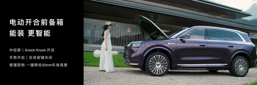 新增149L超大前備箱,可容納20英寸標準登機箱。前備箱內(nèi)按鍵可一鍵降低車身高度50mm,讓取物更便捷。電動開合前備箱可通過中控屏、Knock-Knock開閉;可通過手勢開啟,實體按鍵關(guān)閉。
