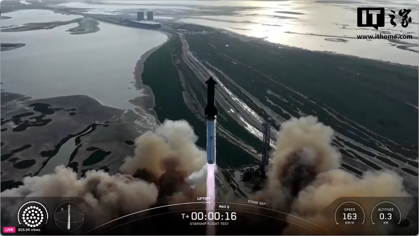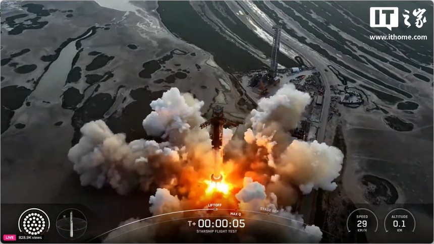 隨著一聲巨響,SpaceX 的星艦超重型助推器準時點燃了 33 臺主發(fā)動機,向著太空飛升,開啟 SpaceX 第十次飛行測試的升空之旅。