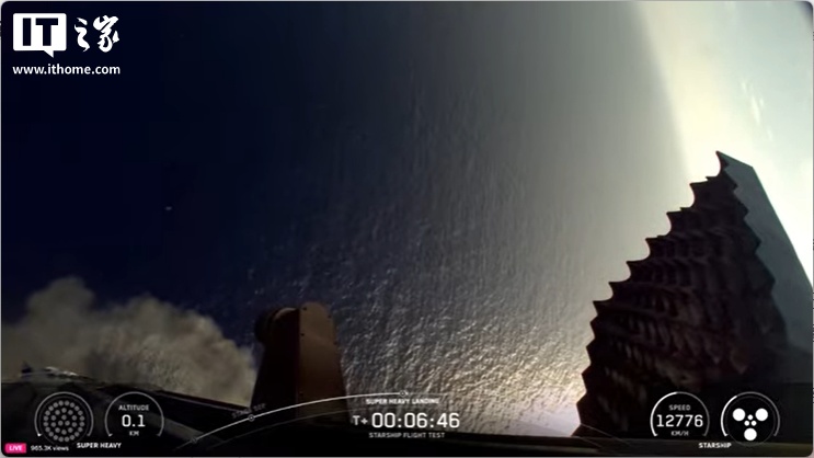 之后,星艦超重型助推器通過一次熱分離與星艦上面級分離,成功在墨西哥灣實現(xiàn)軟著陸和濺落。這款擁有 33 臺發(fā)動機的火箭在發(fā)射過程中損失了一臺發(fā)動機,但這似乎并未影響其飛行或著陸。