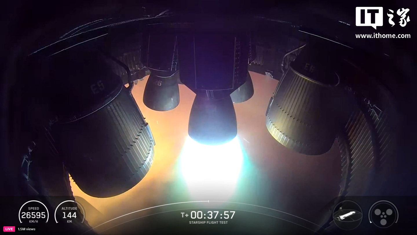 隨著有效載荷部署測試完成,SpaceX 的星艦 10 號飛船在太空中繼續(xù)滑行,隨后在一次關(guān)鍵的重新點火測試中點燃了一臺猛禽發(fā)動機,完成了該航天器在今日飛行中的太空演示。這種發(fā)動機重新點火是確保星艦能夠進行離軌燃燒,以控制其返回地球和著陸。