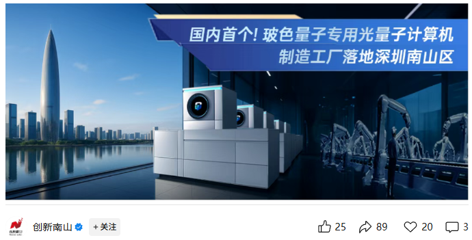 據(jù)創(chuàng)新南山,國內(nèi)量子計算領(lǐng)軍企業(yè) —— 北京玻色量子科技有限公司(IT之家以下簡稱“玻色量子”)自建的“專用光量子計算機制造工廠”近日正式落地深圳南山智城。