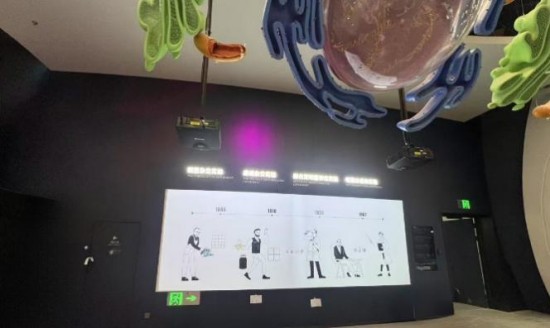 在五層的“宇宙探源”展廳,先進的投影技術(shù)與數(shù)字手段引導觀眾從“粒子起源”穿越至廣袤宇宙,領(lǐng)略微觀與宏觀世界的奧秘。該展廳部署了24臺科視DWU860-iS激光投影機,為“粒子起源”、“寵物定制”、“細胞”、“蛋白質(zhì)結(jié)構(gòu)”、“生命方舟”、“黑洞的奧秘”、“雜交水稻”、“時空之網(wǎng)”及“宇宙”等互動展項提供震撼生動的視覺呈現(xiàn)。