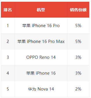 9 月 11 日消息,市場調(diào)查機構(gòu) CounterPoint Research 昨日(9 月 10 日)發(fā)布博文,報告了 2025 年 6 月中國市場最暢銷 5 款智能手機機型,其中 iPhone 16 Pro 和 iPhone 16 Pro Max 均以 5% 份額,位居榜首。