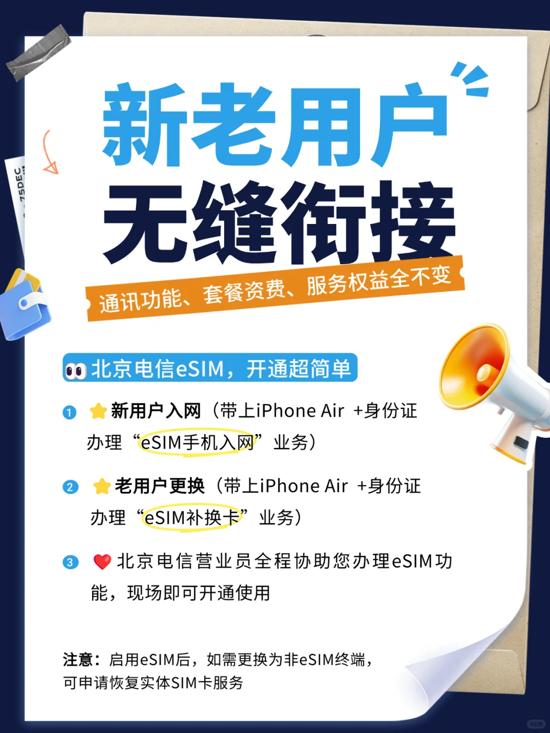 新用戶入網(wǎng):帶上 iPhone Air  + 身份證,辦理“eSIM 手機(jī)入網(wǎng)”業(yè)務(wù)