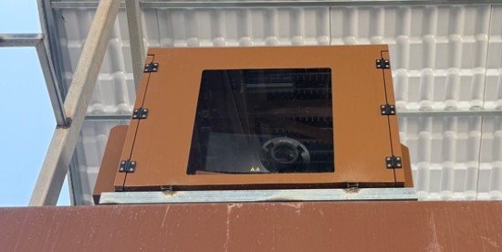建業(yè)顯示團隊為城墻投影進行調(diào)試(左);安裝在防水外殼內(nèi)的科視Christie DWU19-HS激光投影機(右)