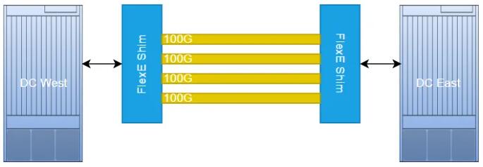 大型云服務商和互聯(lián)網(wǎng)公司擁有多個地理分散的數(shù)據(jù)中心,在這些數(shù)據(jù)中心之間需要支持虛擬機遷移、海量數(shù)據(jù)備份、分布式服務等功能。這些功能都需巨大的帶寬提供支持。使用FlexE 技術,通過對物理鏈路的綁定,實現(xiàn)了數(shù)據(jù)中心鏈路擴容的平滑升級。